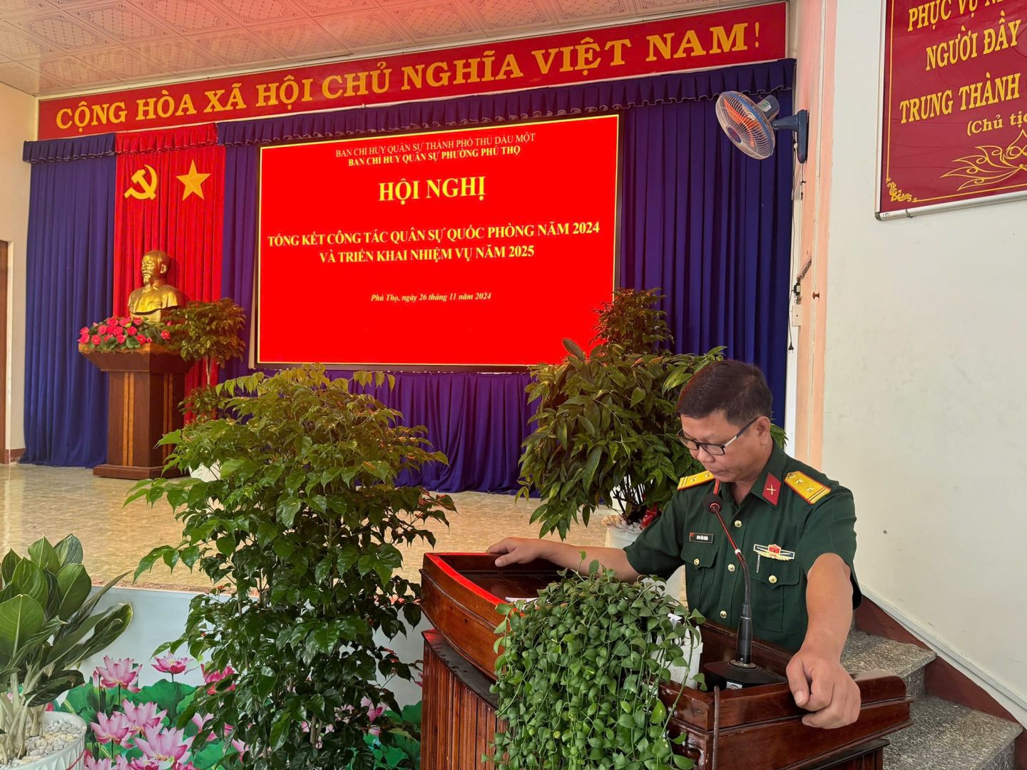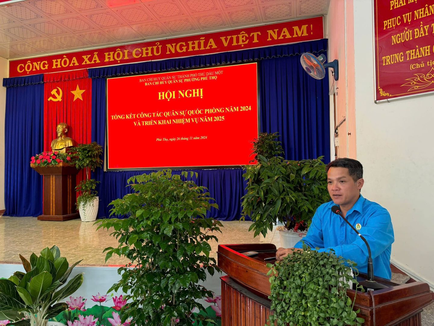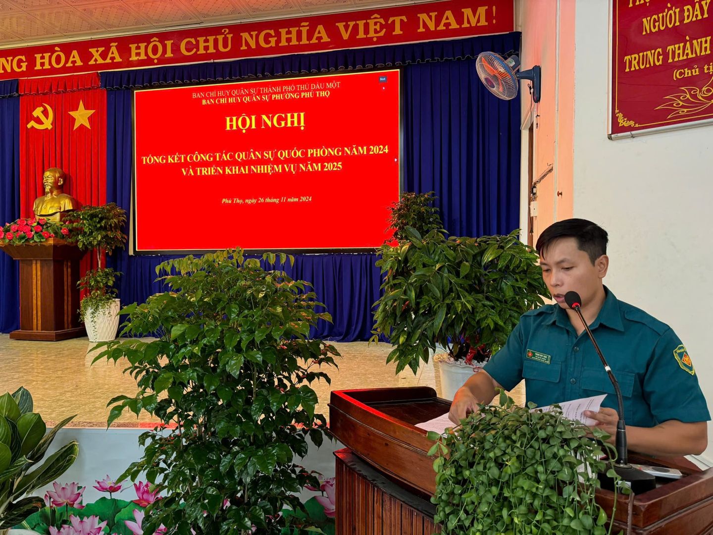 Phát biểu chỉ đạo tại Hội nghị, đ/c Trung tá Đinh Văn Đoàn – Chính trị viên phó/Ban CHQS thành phố và đ/c Võ Minh Tiến – Phó BT Đảng ủy, Chủ tịch UBND phường ghi nhận những kết quả mà Ban CHQS phường đã đạt được các chỉ tiêu trong thực hiện nhiệm vụ Quân sự - Quốc phòng năm 2024; đề nghị Ban CHQS phường trong năm 2025 tiếp tục phát huy những thành quả đã đạt được và cụ thể hóa thành các chương trình, kế hoạch; đồng thời khắc phục những hạn chế, những mặt chưa làm được mà Ban CHQS phường cần tập trung thực hiện trong thời gian tới nhằm hoàn thành tốt nhiệm vụ trong năm 2025.