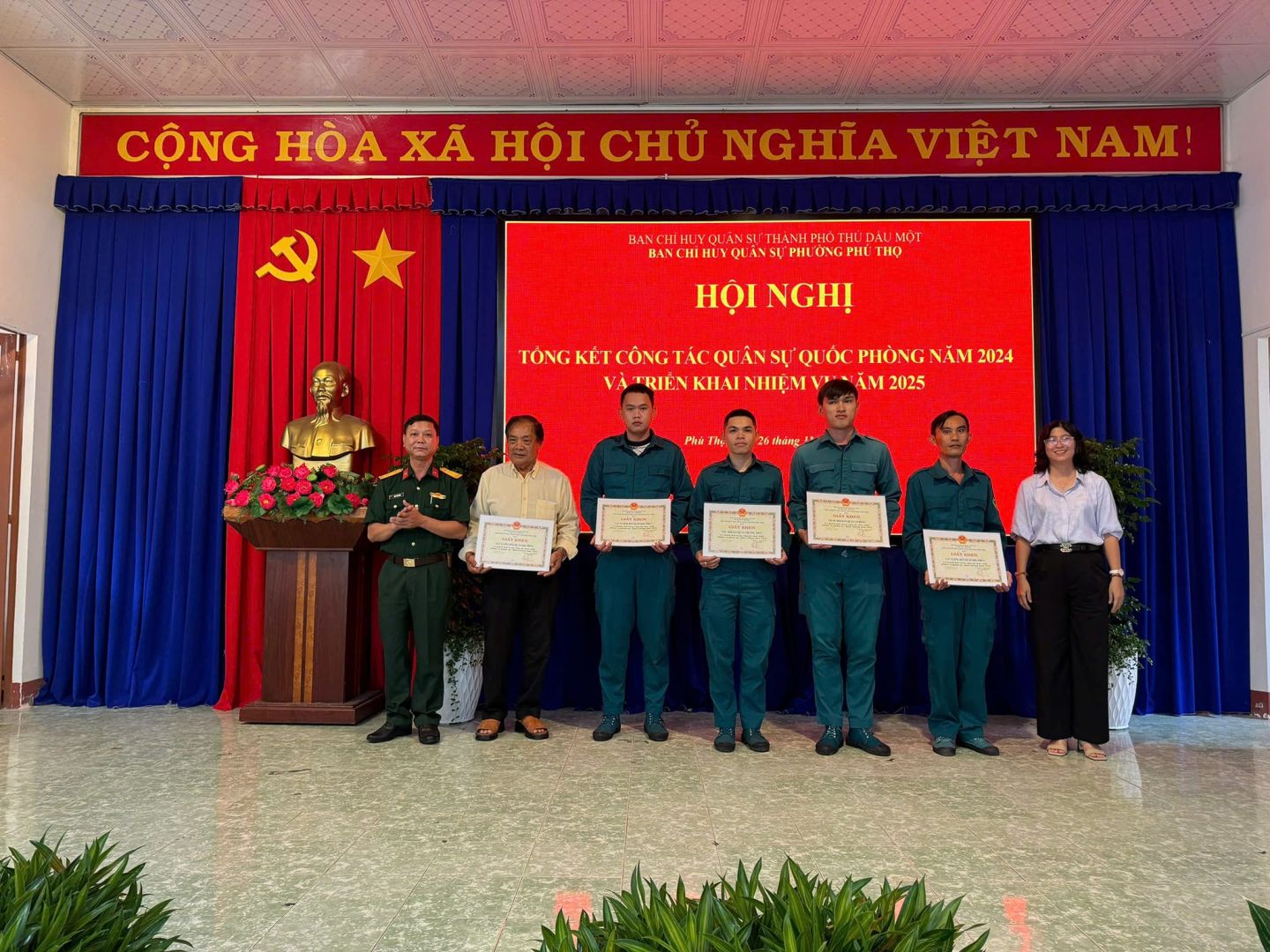 Trong năm 2024, Ban CHQS phường đã triển khai thực hiện nghiêm các nghị quyết, kế hoạch, chỉ thị của cấp trên; làm tốt công tác kiểm tra, đôn đốc, chỉ huy điều hành lực lượng thực hiện tốt các mặt công tác. Kịp thời tham mưu Đảng ủy, UBND phường ban hành các văn bản lãnh đạo, chỉ đạo thực hiện công tác quân sự, quốc phòng địa phương, bảo đảm đầy đủ chế độ chính sách cho lực lượng dân quân tự vệ; giao quân đạt 100% chỉ tiêu (trong đó có 01 đảng viên chính thức nhập ngũ), chất lượng được nâng lên; tổ chức các lớp bồi dưỡng, cập nhật, phổ biến kiến thức quốc phòng và an ninh cho các đối tượng theo kế hoạch.