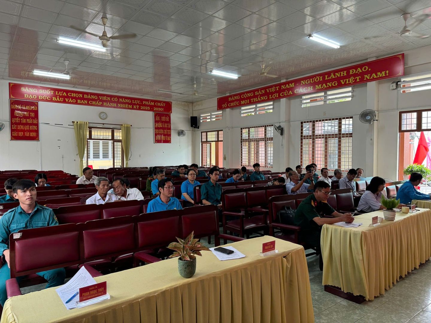 Đến dự và chỉ đạo Hội nghị có đ/c Trung tá Đinh Văn Đoàn – Chính trị viên phó/Ban CHQS thành phố; về phía lãnh đạo địa phương có đ/c Võ Thị Lý – Thành ủy viên – Bí thư Đảng ủy phường; đ/c Võ Minh Tiến - Phó BT Đảng ủy, Chủ tịch UBND phường; đ/c Dương Võ Duy Bảo – Phó CT UBND phường; đ/c Trịnh Duy Anh - PCHT/Ban CHQS phường; cùng các đồng chí đại diện các ngành, đoàn thể phường; Bí thư Chi bộ, Trưởng Ban điều hành 7 khu phố; các đ/c là lực lượng DQCĐ, DQTT và DQTC của phường.