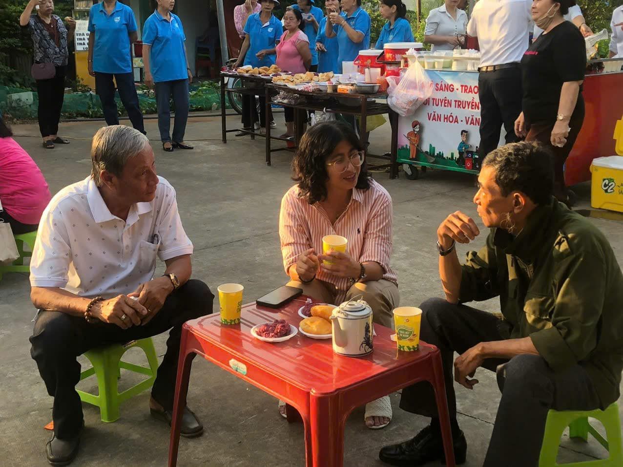 Hoạt động đang diễn ra “Cà phê sáng - trao đổi với nhân dân” tại công viên khu phố 4, đường Lê Hồng Phong, phường Phú Thọ.