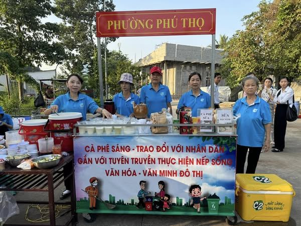 Mô hình "Cà phê sáng - Trao đổi với nhân dân" được duy trì vào sáng thứ hai hàng tuần tại các hội trường, công viên trên địa bàn phường Phú Thọ.