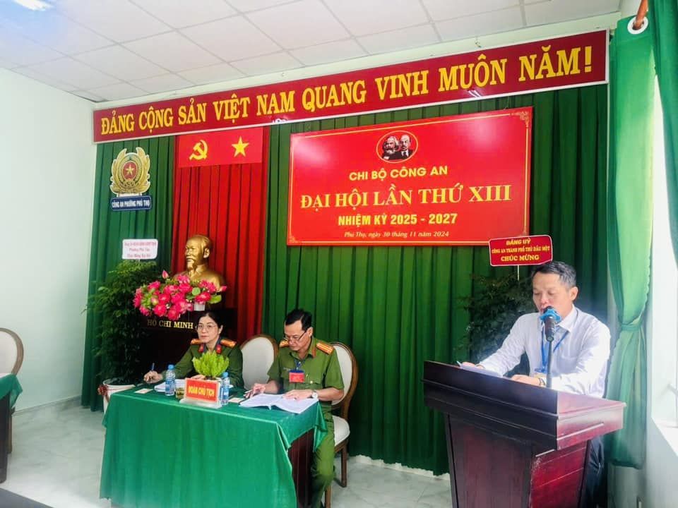 Dự và chỉ đạo Đại hội có đồng chí Nguyễn Văn Nghĩa - Phó trưởng Công an TP. Thủ Dầu Một; đồng chí Võ Thị Lý - TUV, Bí thư Đảng uỷ phường; đ/c Võ Minh Tiến – Phó BT Đảng ủy, CT UBND phường cùng các Đảng viên Chi bộ Công an cùng dự.