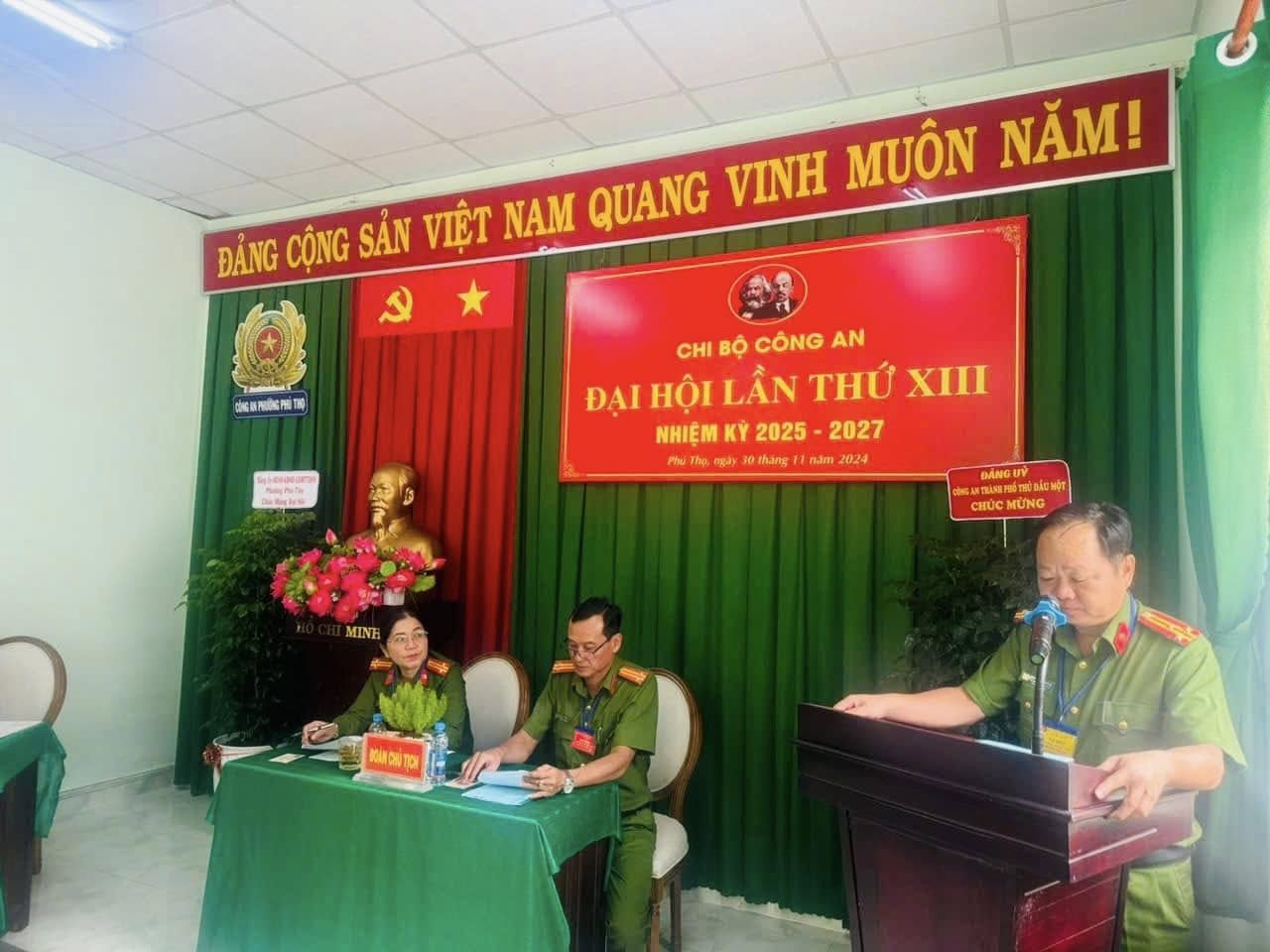 Phát biểu chỉ đạo tại Đại hội, đồng chí Võ Minh Tiến - Phó Bí thư, Chủ tịch Uỷ ban Nhân dân phường ghi nhận và biểu dương những thành tích mà Chi bộ đã đạt được trong nhiệm kỳ qua, bên cạnh đó đồng chí yêu cầu tập thể Chi bộ trong nhiệm kỳ 2025 – 2027 tiếp tục phát huy thực hiện tốt Nghị quyết Đại hội Chi bộ và Đại hội Đảng các cấp, tăng cường công tác giữ vững an ninh quốc gia, bảo đảm trật tự, an toàn xã hội góp phần vào sự phát triển chung của phường Phú Thọ.