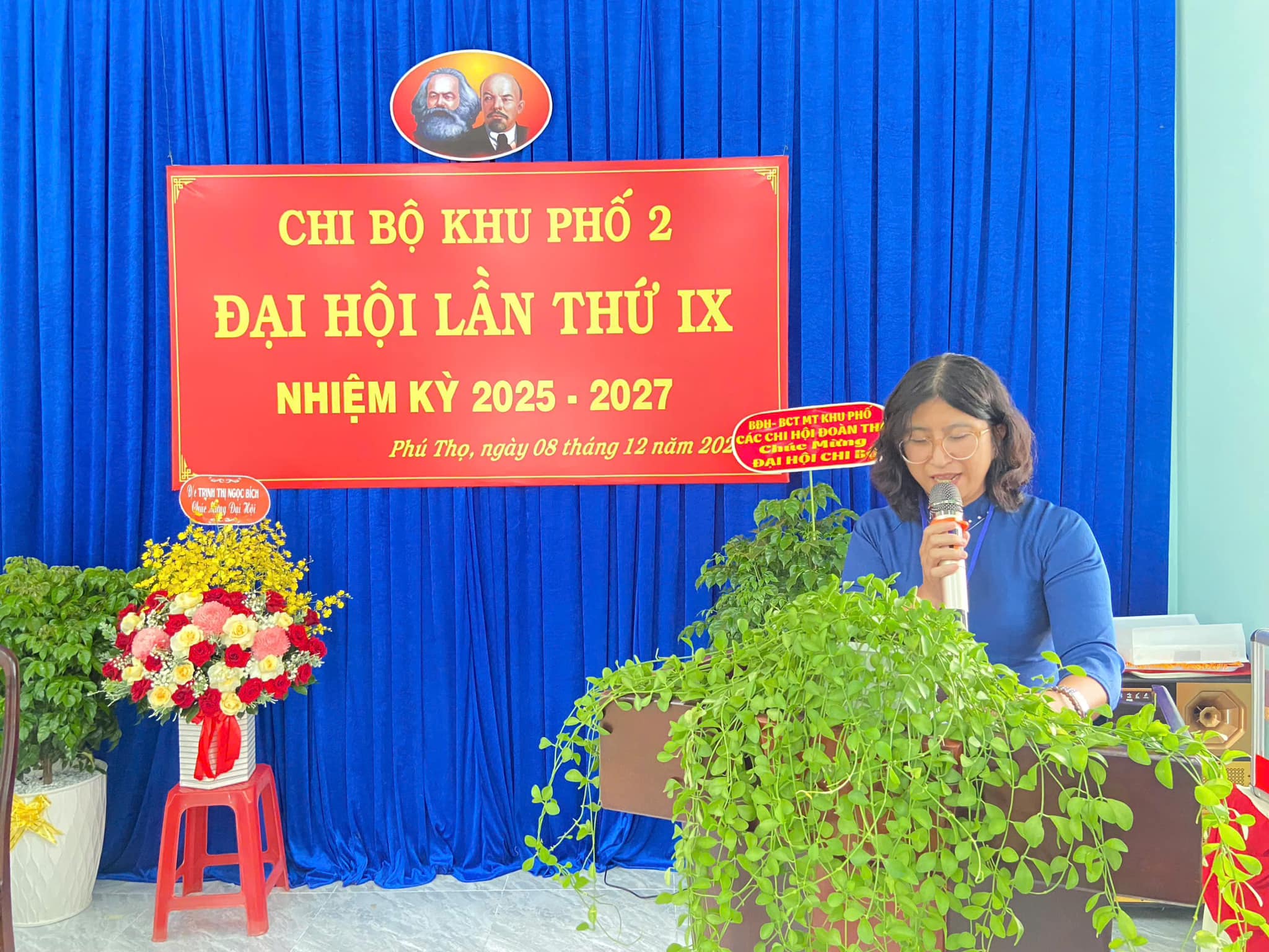 Đại hội Chi bộ khu phố 2 đã diễn ra thành công tốt đẹp, để lại dấu ấn về tinh thần đoàn kết, trách nhiệm và quyết tâm phát triển toàn diện. Đây chính là động lực quan trọng để Chi bộ tiếp tục vững bước trên con đường xây dựng khu phố văn minh, giàu đẹp, đóng góp tích cực vào sự phát triển chung của phường Phú Thọ.