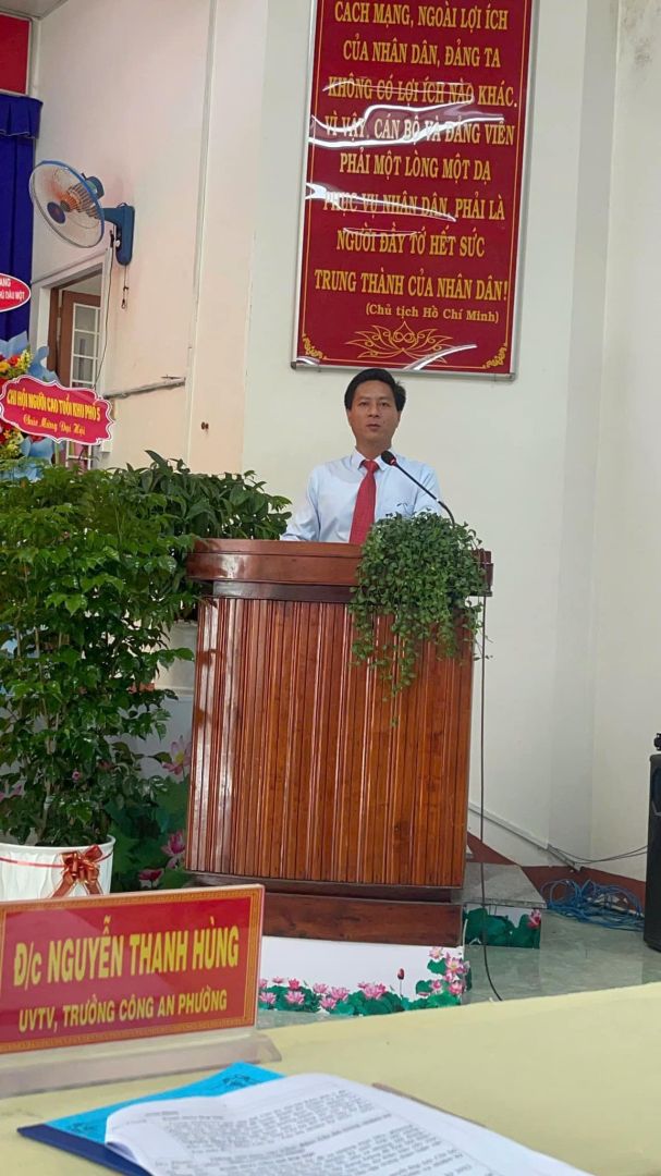 Tham dự có Đồng chí Nguyễn Hữu Hùng – phó Bí thư TT Đảng ủy, CT HĐND phường; Đồng chí Nguyễn Thanh Hùng – UVTV, Trưởng Công an phường và các đồng chí đảng viên chi bộ khu phố.