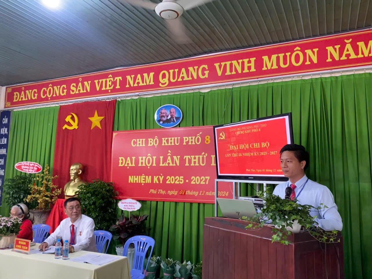 Đại hội Chi bộ khu phố 8 đã diễn ra thành công tốt đẹp, để lại dấu ấn về tinh thần đoàn kết, trách nhiệm và quyết tâm phát triển toàn diện. Đây chính là động lực quan trọng để Chi bộ tiếp tục vững bước trên con đường xây dựng khu phố văn minh, giàu đẹp, đóng góp tích cực vào sự phát triển chung của phường Phú Thọ.
