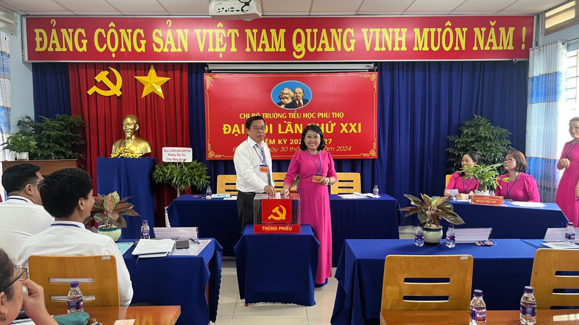 Đại hội vinh dự đón tiếp đồng chí Nguyễn Hữu Hùng – Phó Bí thư thường trực Đảng ủy- Chủ tịch Hội đồng Nhân dân phường; đồng chí Dương Võ Duy Bảo – Đảng ủy viên, Phó Chủ tịch Ủy ban Nhân dân phường và toàn thể đảng viên trong Chi bộ trường Tiểu học Phú Thọ. Với tinh thần dân chủ, trách nhiệm và đoàn kết, Đại hội đã hoàn thành các nội dung quan trọng theo kế hoạch đề ra.