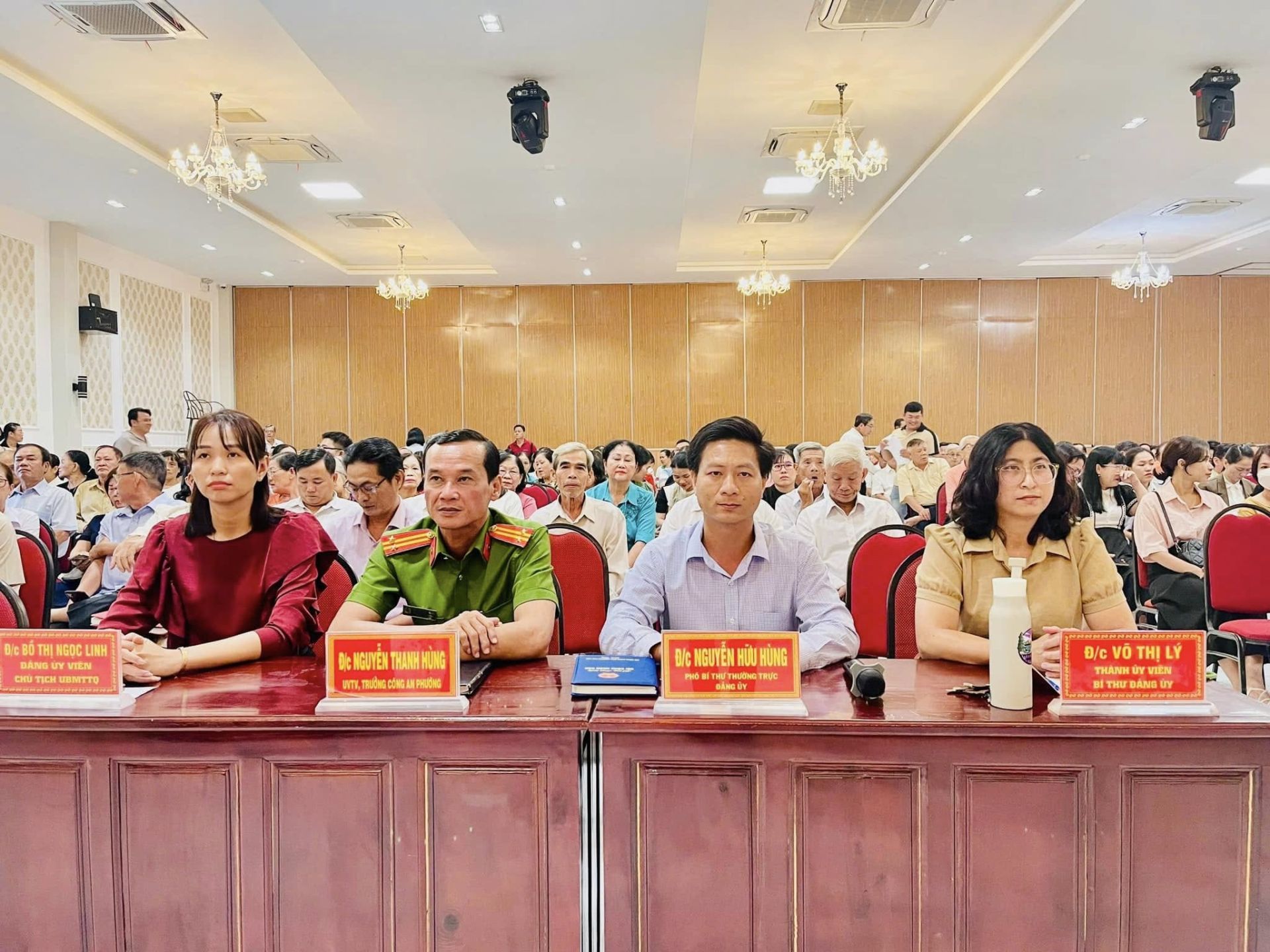 Tham dự hội nghị có đồng chí Võ Thị Lý- TUV, Bí thư Đảng ủy phường, đ/c Nguyễn Hữu Hùng - PBT. TT Đảng ủy, Chủ tịch HĐND phường; đ/c Võ Minh Tiến - PBT Đảng ủy, Chủ tịch UBND phường; đ/c Nguyễn Thannh Hùng – Trưởng Công an phường cùng các đồng chí trong BCH Đảng bộ phường và toàn thể đảng viên đang sinh hoạt trên địa bàn phường.