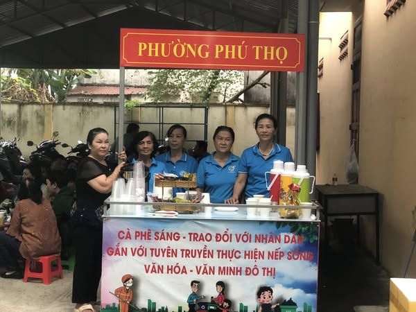 Mô hình "Cà phê sáng - Trao đổi với nhân dân" được duy trì vào sáng thứ hai hàng tuần tại các hội trường, công viên trên địa bàn phường Phú Thọ.