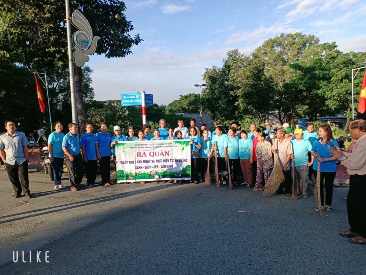 Sáng ngày 09/11/2024, Ban Chỉ đạo Đề án Nâng cao chất lượng Cuộc vận động “Xây dựng nếp sống văn hóa - văn minh đô thị” ra quân làm công tác dân vận thực hiện “Ngày Thứ bảy văn minh”. Ban điều hành 7 khu phố, 8 tổ tự quản BVMT và 103 lượt tổ viên và các hộ dân 2 bên đường tham gia vệ sinh trên toàn địa bàn phường, trụ sở Uỷ ban, văn phòng khu phố, các trường học... .Tại buổi ra quân, các lực lượng đã phối hợp thực hiện tổng vệ sinh môi trường như quét dọn vệ sinh trên tuyến đường, cắt tỉa và chăm sóc cây xanh dọc các tuyến đường, tháo gỡ 97 bảng quảng cáo sai quy định