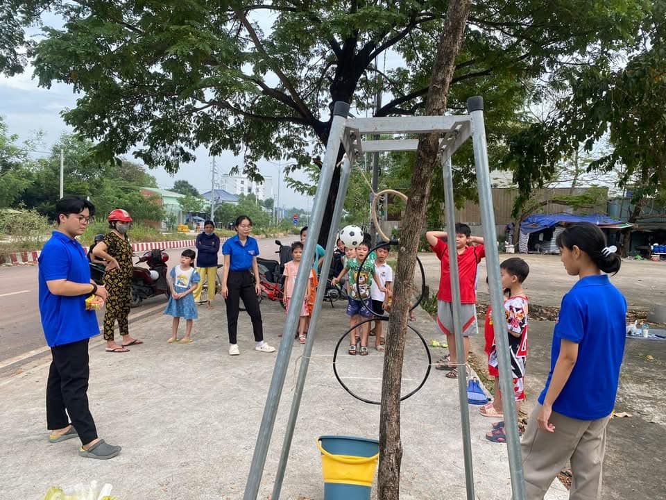 Tại các điểm sân chơi, các em thiếu nhi được tham gia các trò chơi vô cùng bổ ích và mang lại nhiều niềm vui, tiếng cười như ném cầu xuyên tâm, ném banh, ném vòng, nhảy lò cò, tô tranh, đọc truyện tranh, … và được nhận những phần quà bánh kẹo khi tham gia các trò chơi này.