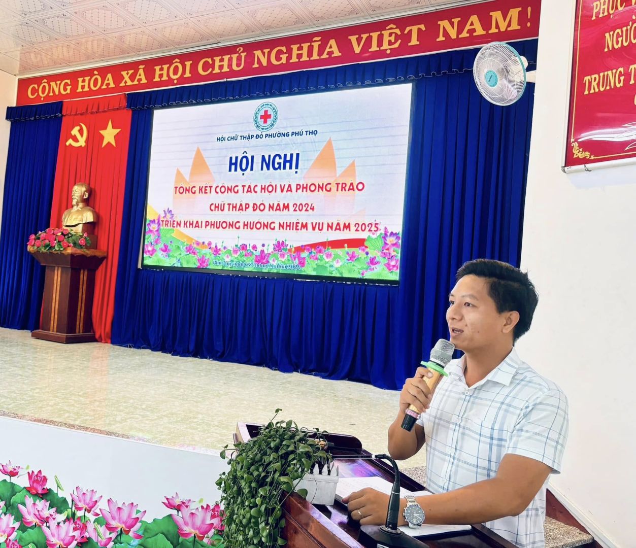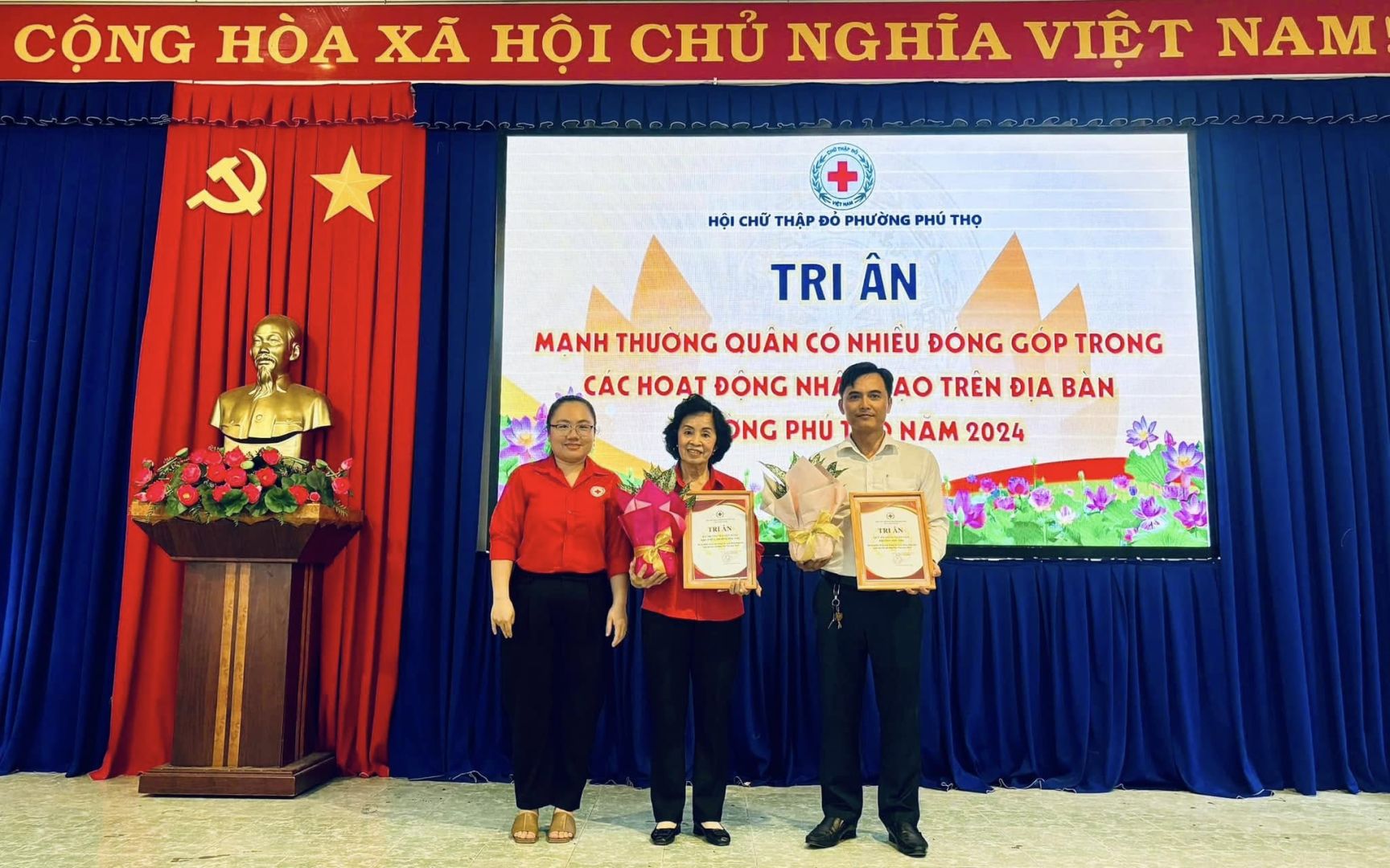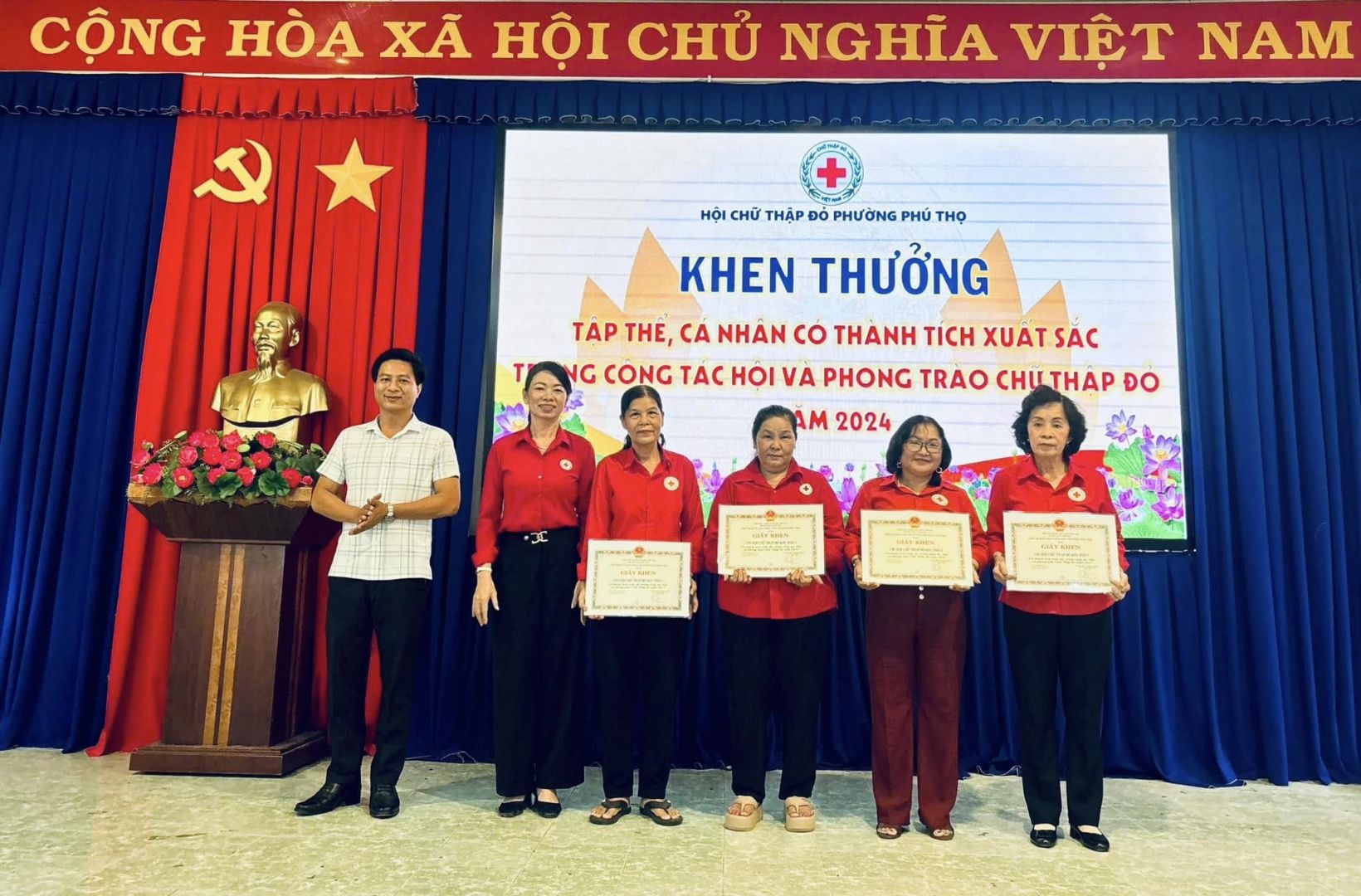 Nhân dịp này Hội CTĐ phường đã đề nghị UBND phường khen thưởng cho 04 tập thể và 07 cá nhân có thành tích xuất sắc trong công tác Hội, phong trào Chữ thập đỏ năm 2024. Hội phường biểu dương 03 tập thể và 11 cá nhân. Trao quà cho các địa chỉ nhân đạo và mô hình “Dinh dưỡng cùng bé”. Tri ân quý mạnh thường quân đã đồng hành cùng các phong trào của hội. Đồng thời phát động thi đua và phong trào “Nuôi heo đất” năm 2025./.