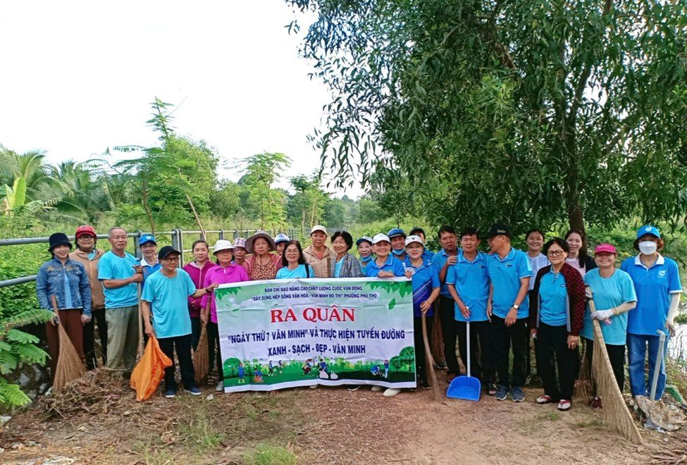 Sáng ngày 26/10/2024, Hội LHPN phường Phú Thọ tổ chức ra quân vệ sinh môi trường tại Tuyến rạch Hoa phượng vỹ, khu phố 8 và Tuyến suối Hoa Cau, khu phố 7.