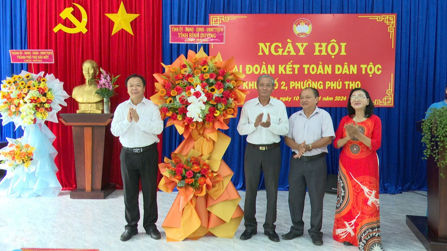Đại diện Lãnh đạo tỉnh về dự Ngày Hội, có: Ông Nguyễn Văn Đông – Ủy viên Ban Thường vụ tỉnh ủy, Bí thư Thành ủy Thủ Dầu Một; Ông Đỗ Thành Chung – Chuyên viên ban Tuyên giáo – Phong trào Ủy ban MTTQ Việt Nam tỉnh; đại diện Lãnh đạo thành phố có ông Huỳnh Tấn Hiệp – Thành ủy viên, Trưởng phòng Tài chính & Kế hoạch thành phố; Bà Huỳnh Thị Tuyết Loan – Thành ủy viên, Chủ tịch LĐLĐ thành phố; Ông Nguyễn Minh Huy – Phó Chánh văn phòng Thành ủy; Ông Nguyễn Anh Tuấn – Ủy viên Thường trực Ủy ban MTTQ Việt Nam thành phố; Lãnh đạo phường có Bà Võ Thị Lý – Thành ủy viên, Bí thư Đảng ủy phường; Ông Nguyễn Hữu Hùng – Phó bí thư Thường trực Đảng ủy, Chủ tịch HĐND phường; Ông Võ Minh Tiến – Phó bí thư Đảng ủy, Chủ tịch UBND phường; Bà Bồ Thị Ngọc Linh – Đảng ủy viên, Chủ tịch Ủy ban MTTQ Việt Nam phường; cùng các đồng chí trong Ban Thường vụ, Ban Chấp hành Đảng bộ phường, trưởng các ngành, đoàn thể phường; các ban ngành, đoàn thể; cán bộ công chức, người lao động; Đại diện Cấp ủy Chi bộ – Ban Điều hành khu phố – Ban công tác Mặt trận 7 khu phố cùng sự có mặt của các hộ gia đình tiêu biểu và đoàn viên, hội viên, nhân dân trên địa bàn phường Phú Thọ.