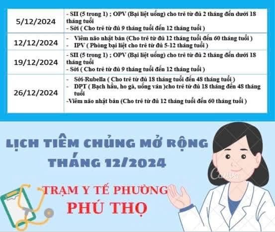 Trạm Y tế phường Phú Thọ thông báo Lịch tiêm chủng mở rộng tháng 12/2024