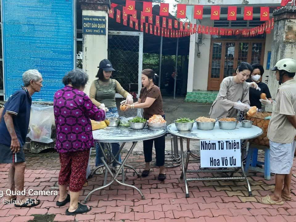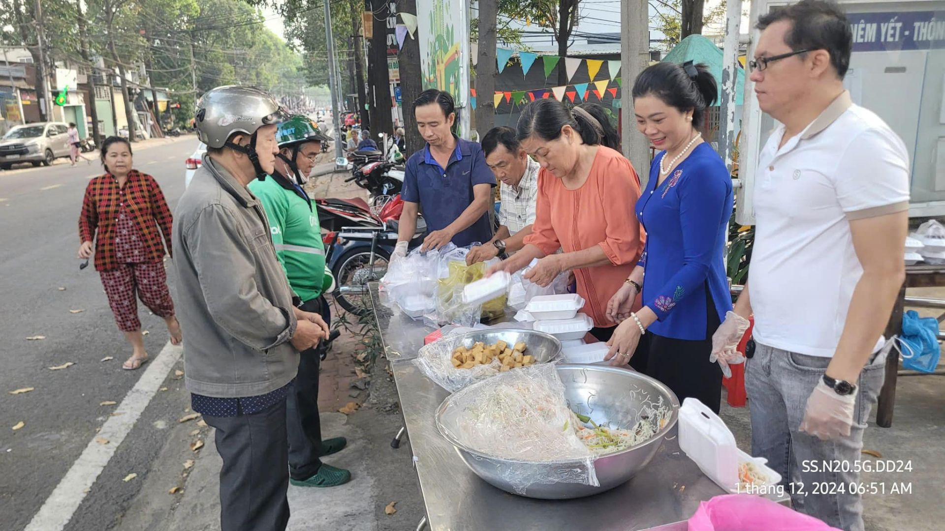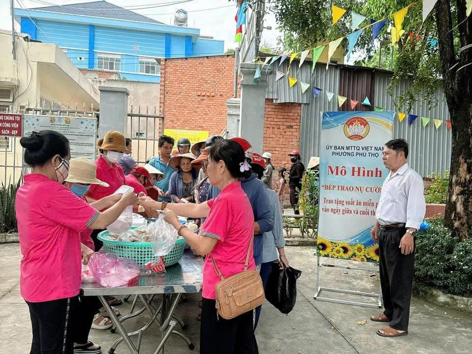 Mô hình “Bếp trao nụ cười” cũng đã gửi đến người dân lao động có hoàn cảnh khó khăn trên địa bàn phường 300 suất cơm gà kho sả và thịt kho trứng cùng 200 suất bún gạo xào chay, trị giá 10.000.000 đồng tại Công viên khu phố 4.