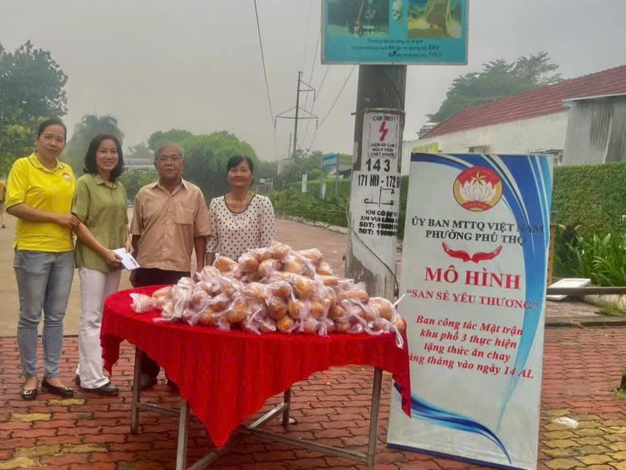 Trong các buổi sáng ngày 15 và 16 tháng 12/2024, Ban công tác Mặt trận khu phố 3 tiếp tục duy trì mô hình “San sẻ yêu thương” trao tặng 250 suất bánh mì chay, trị giá 2.500.000 đồng và mô hình “Kết nối tấm lòng vàng” trao tặng 06 phần quà, trị giá 1.200.000 đồng.