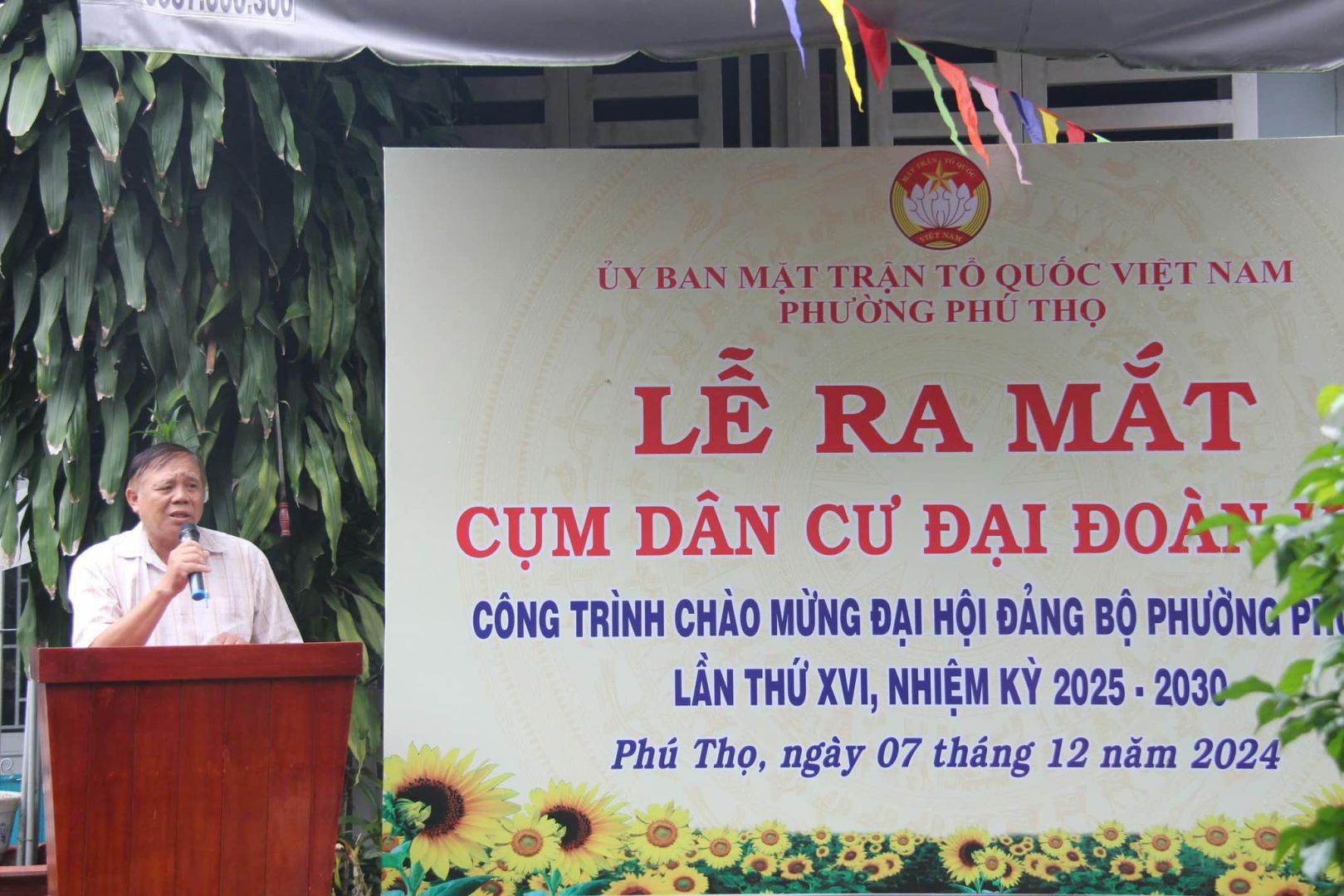 Sáng ngày 7/12/2024, MTTQ phường Phú Thọ ra mắt mô hình "Cụm dân cư Đại đoàn kết" tại tổ Cư Xá thuộc khu phố 5, phường Phú Thọ. Mô hình được sự hưởng ứng nhiệt tình của hơn 30 hộ dân sinh sống tại tổ Cư Xá.