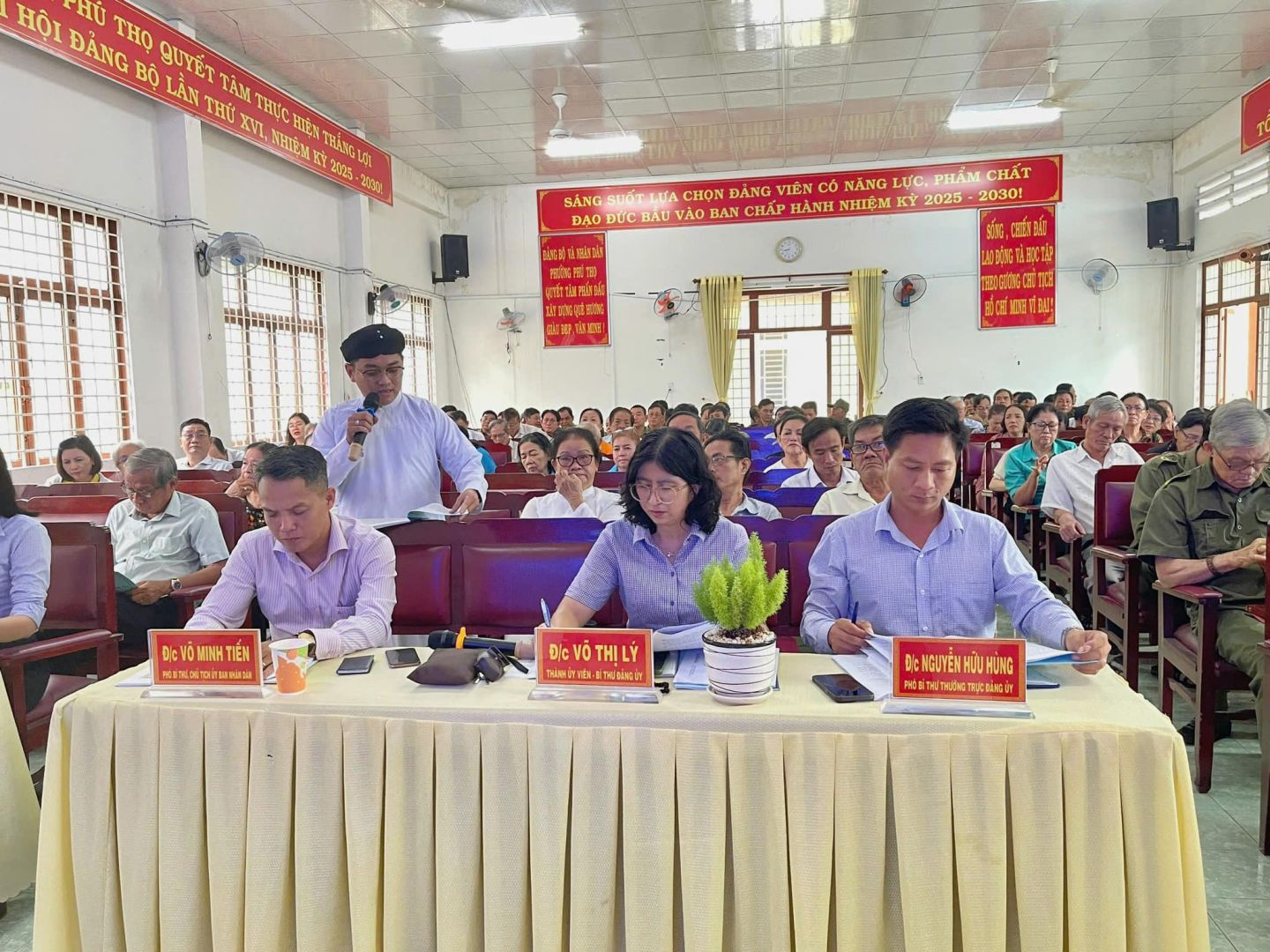 Tham dự Hội nghị, có: bà Võ Thị Lý – Thành ủy viên, Bí thư Đảng ủy phường; ông Nguyễn Hữu Hùng – Phó Bí thư Thường trực Đảng ủy, Chủ tịch HĐND phường, Trưởng Khối vận; ông Võ Minh Tiến – Phó bí thư Đảng ủy, Chủ tịch UBND phường; ông Nguyễn Thanh Hùng – Ủy viên thường vụ, Trưởng Công an phường; ông Lê Thanh Trà – Đảng ủy viên, Phó chủ tịch HĐND phường và bà Bồ Thị Ngọc Linh – Đảng ủy viên, Chủ tịch Ủy ban MTTQ Việt Nam phường. Cùng các ông, bà là Ủy viên Ủy ban MTTQ Việt Nam phường; Trưởng, phó ban ngành đoàn thể của phường; các ông bà là cấp ủy, Ban điều hành, Ban Công tác mặt trận, Ban Cai quản Họ Đạo Cao Đài Phú Thọ; lực lượng An ninh cơ sở và các ông bà là cá nhân tiêu biểu đại diện cho các tầng lớp nhân dân trên địa bàn phường.